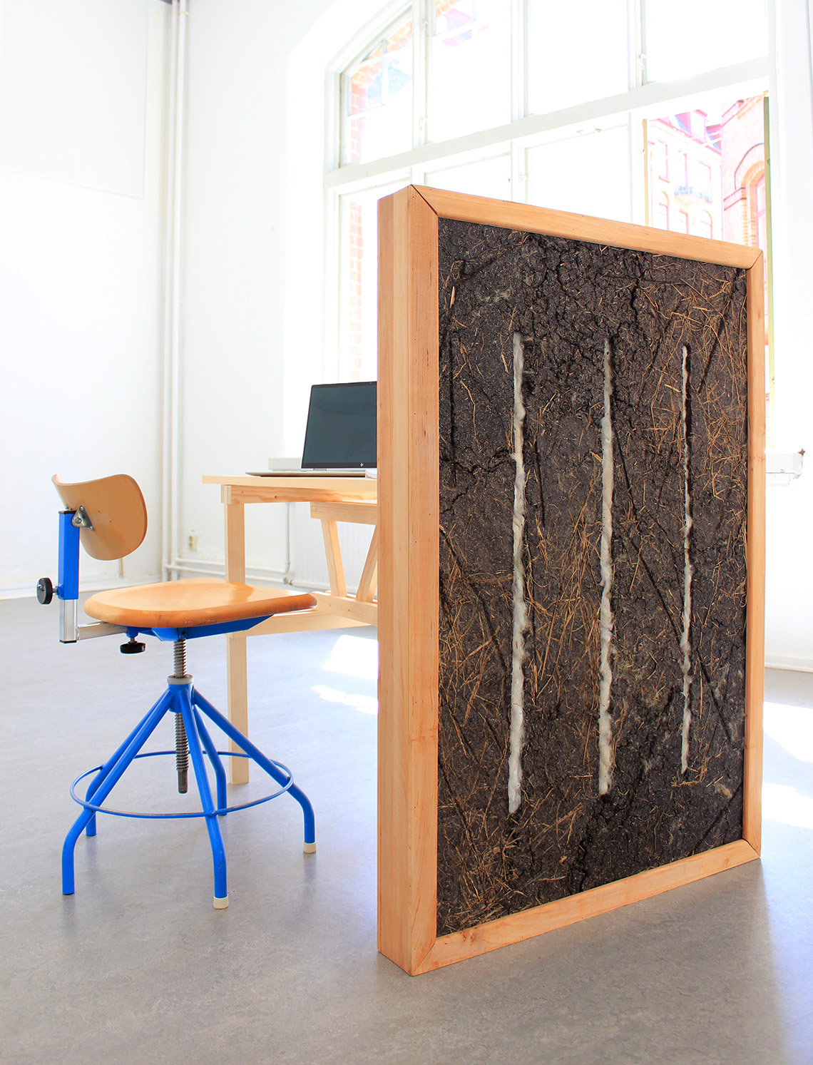 Resultatet i det här projektet utgår ifrån frågan om hästgödsel har en möjlighet att bli ett material som kan användas som en skärmvägg och ett ljuddämpningsmaterial. En skärmvägg som ska passa in i miljöer såsom kontor och bibliotek och där produkten ska skapa en trygghet och lugn i stressiga miljöer. Genom att använda mig utav miljövänliga material och naturnära färger har jag en förhoppning att koncentrationen inte ska störas och i stället skapa ett bättre fokus.