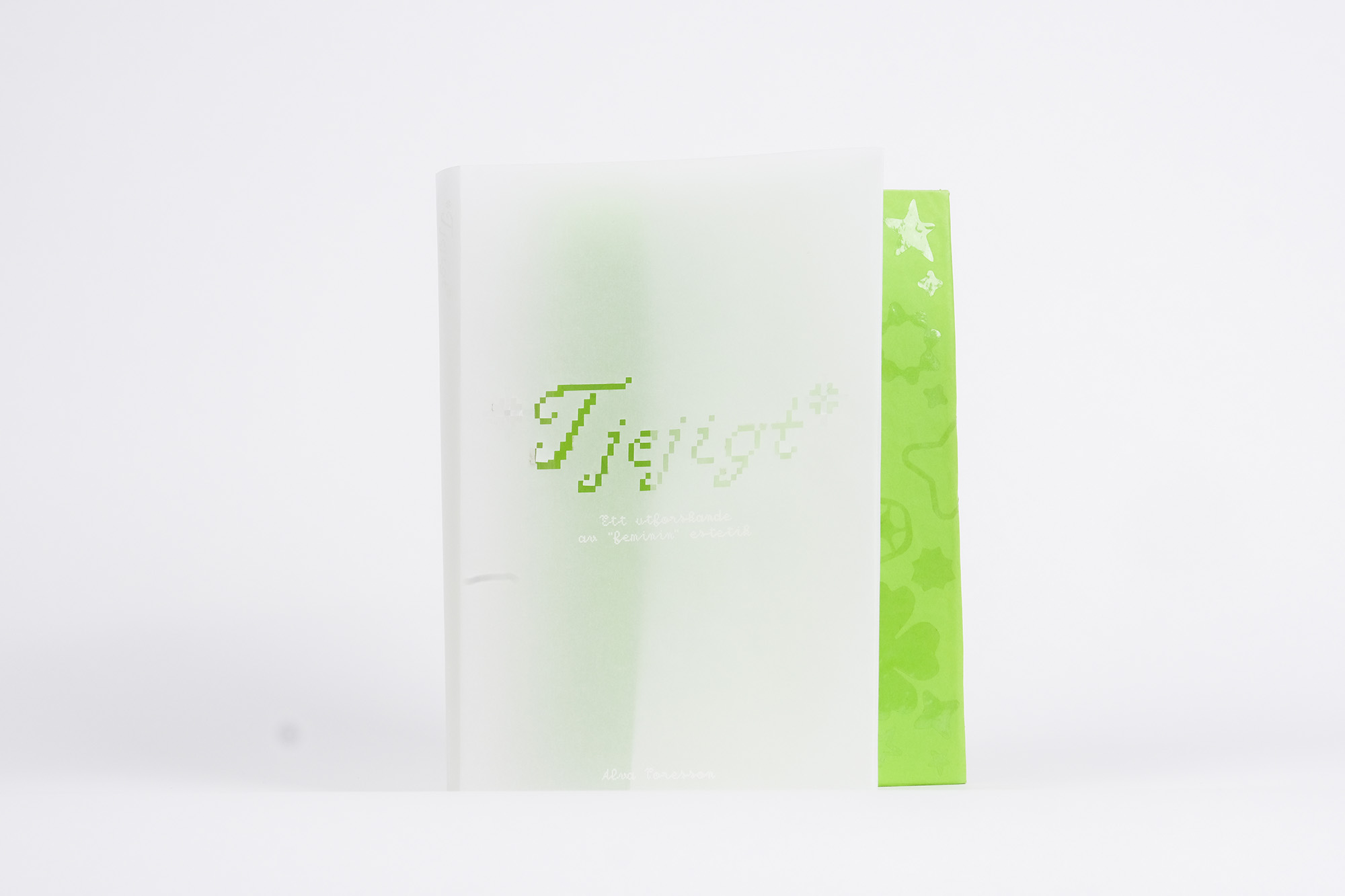 *Tjejigt* är en undersökande publikation som kartlägger stereotypiskt *tjejig* estetik för att förstå vad som gör ett visuellt uttryck feminint och hur uppfattningar om genus och estetik kan utmanas. Publikationens design är ett resultat av krockar mellan stereotypt “feminina” respektive “maskulina” estetiker, en metod för att omdana och utmana genusuppdelningen av visuella uttryck.