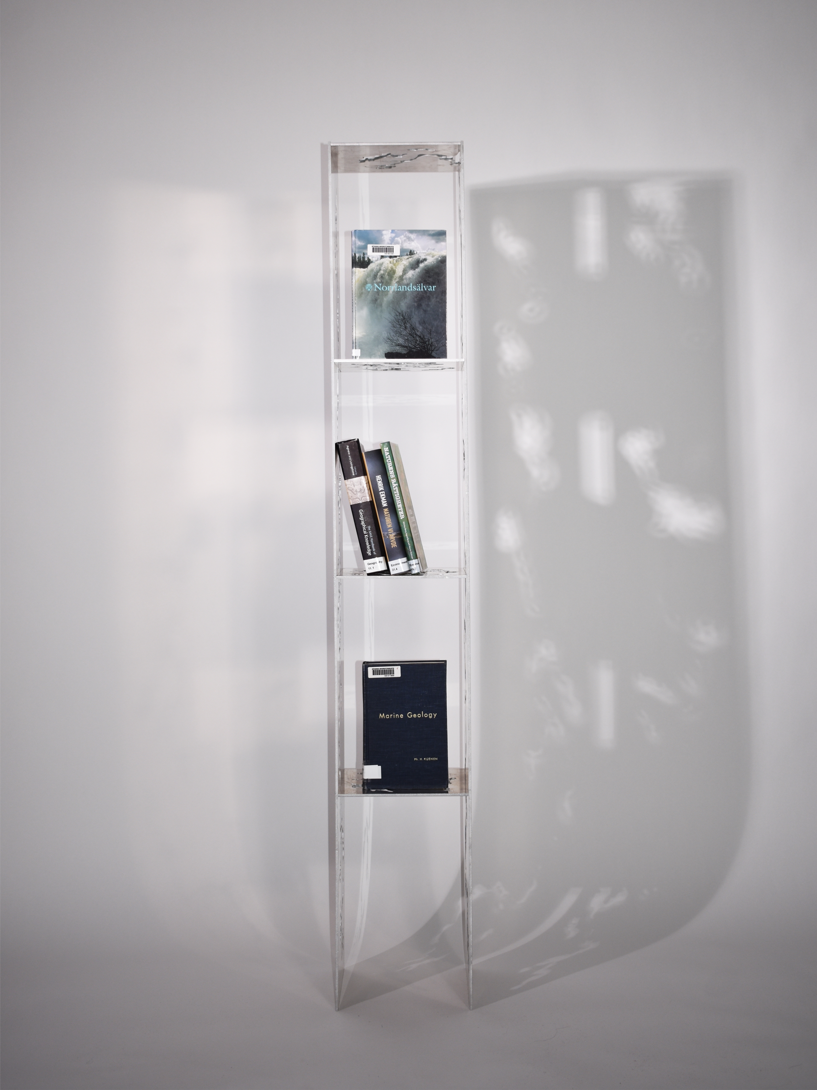Vindelälven har i detta projekt också agerat som forminspiration. I skissprocessen användes bildreferenser och beskrivande ord som metod för att översätta Vindelälven till form och material. Med hjälp av ljus ämnar bokhyllornas formgivning att väcka intresse i ett rum. Hyllornas funktion är att vara bärare av kunskap om människans relation till naturen och hur människan ofta sätter sig över den.