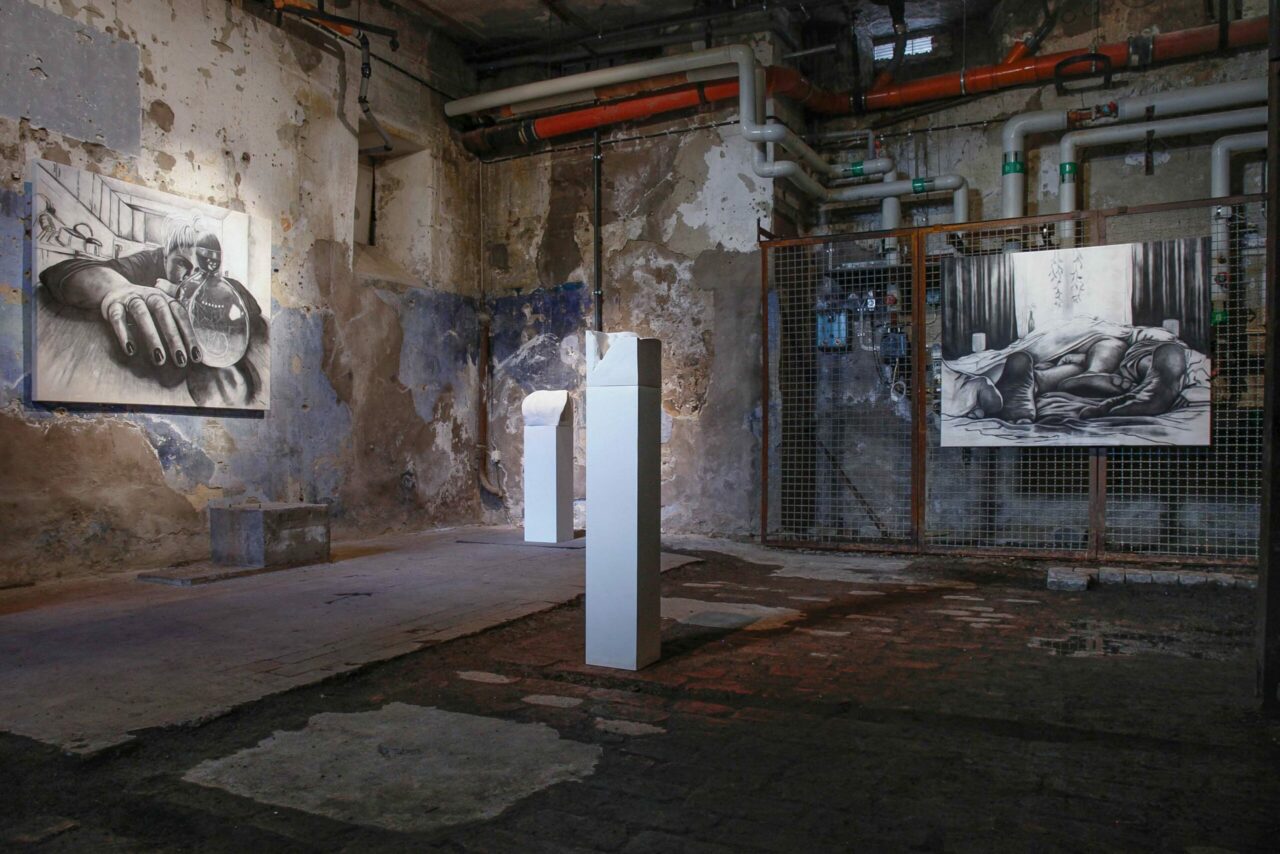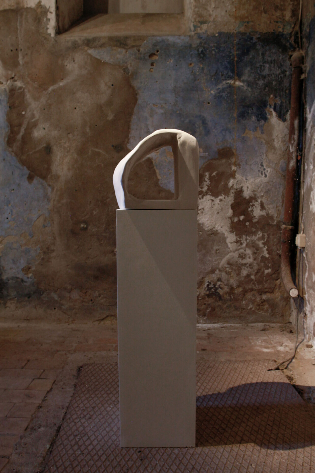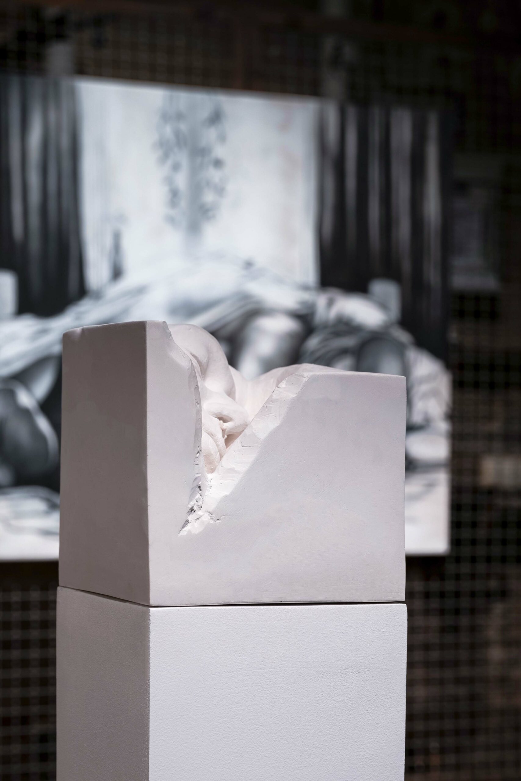 Kolet pulveriseras och försvinner i handen i takt med att ytan färgas, underlagets sprickor och ojämnheter är det enda som gör det möjligt att lämna ett avtryck. Gipspulvret blandas till en massa, trögflytande och formbar. I kontakt med omgivningen hittar den åter sin fasta form.