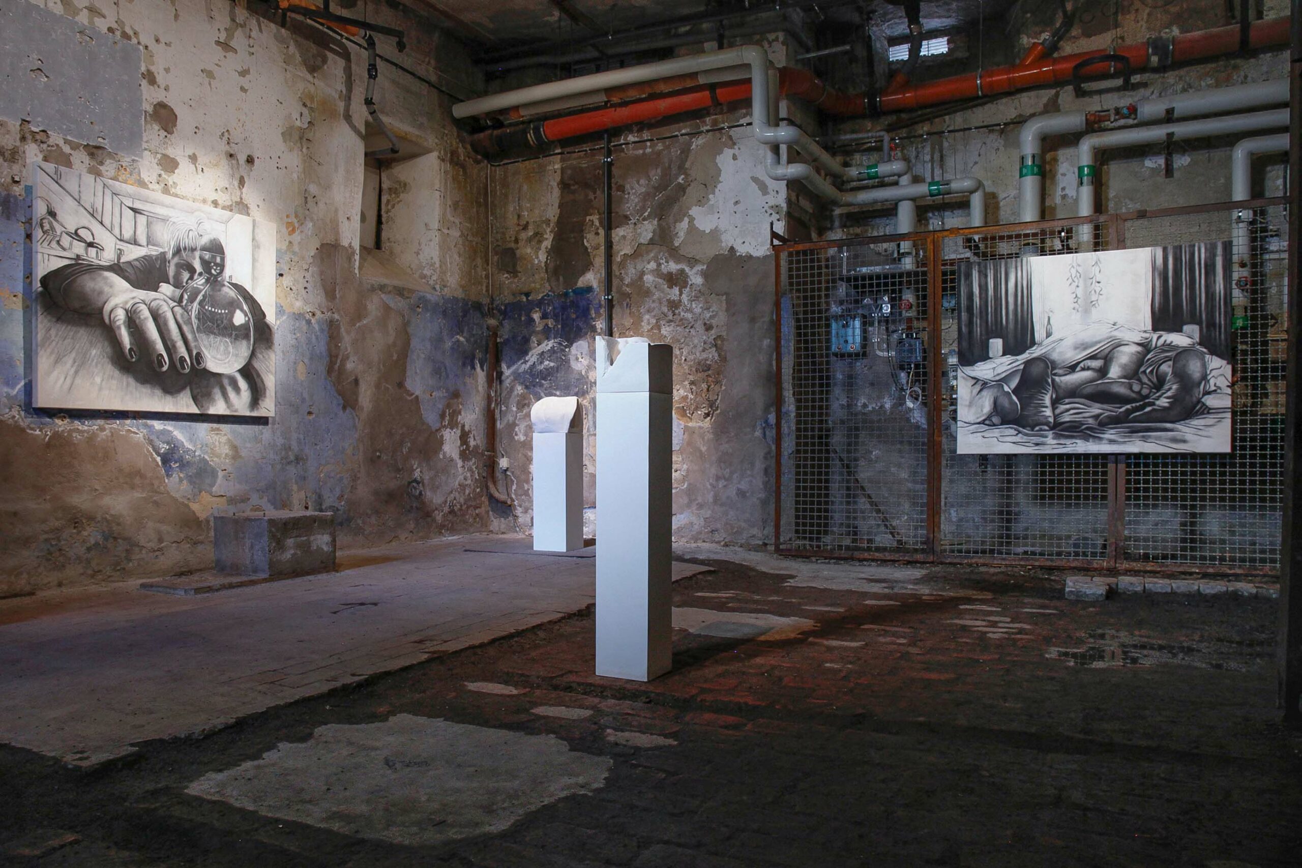 Efter hängivet umgänge med olika material hittar jag ett samspel med den tematik som länge varit central i mitt arbete. Innerliga begär, komplexa kroppsliga relationer, identitetssökande och längtan efter tillhörighet samlas under begreppet utanförskap. Hur det växer fram i konflikt med samhällets förväntningar.
