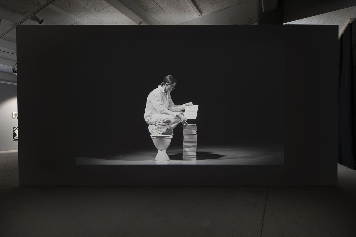 Anna Schlechter draws on the absurd as a concept that deals with how aspiration and understanding fail to meet reality. Her work often contains a performative aspect as well as references to the canon of Western art history. The video piece “Toilet Theories” reflects on time as an everyday experience, characterised as absurd and evading immediate comprehension.