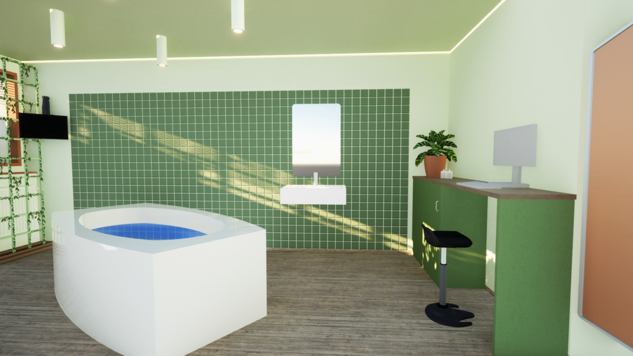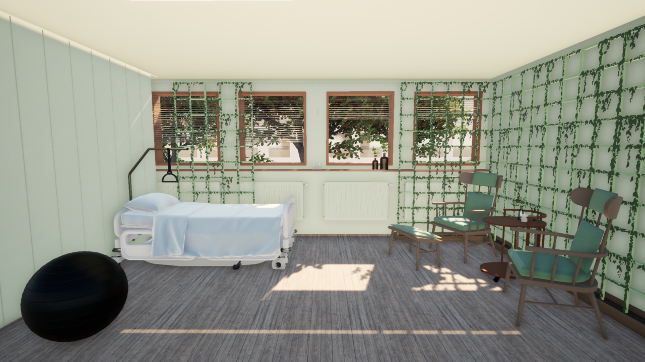The design is based on studies from the Room4Birth research project among others, and includes carefully selected color palettes, adaptable furniture, and strategic use of greenery to create a calm and safe atmosphere. The project advocates for a holistic approach to birthing environments that takes into account not only physical comfort but also the emotional well-being of expectant parents.