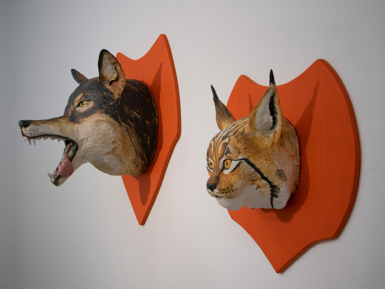 En varg, ett lodjur, en hare och ett får. Förhöjda troféer sitter Rovdjurens huvuden på väggen med var sin sköld. Stumma är dom nu prydnadsdekorationer som talar för en människas hjälteliga handling av förvaltande och skydd av såväl natur som samhälle.