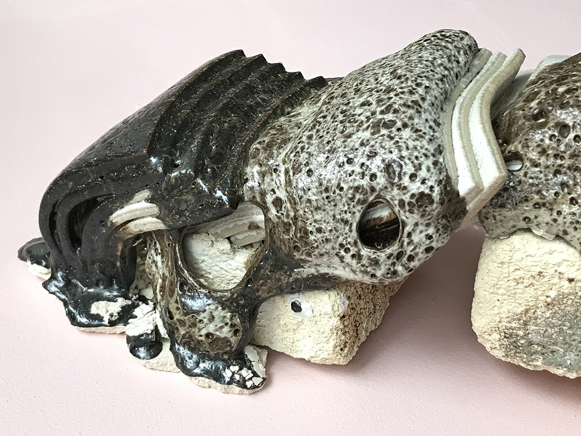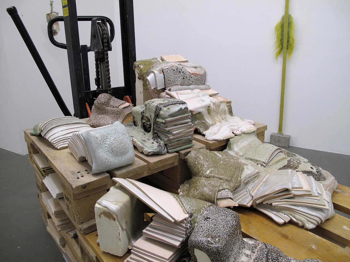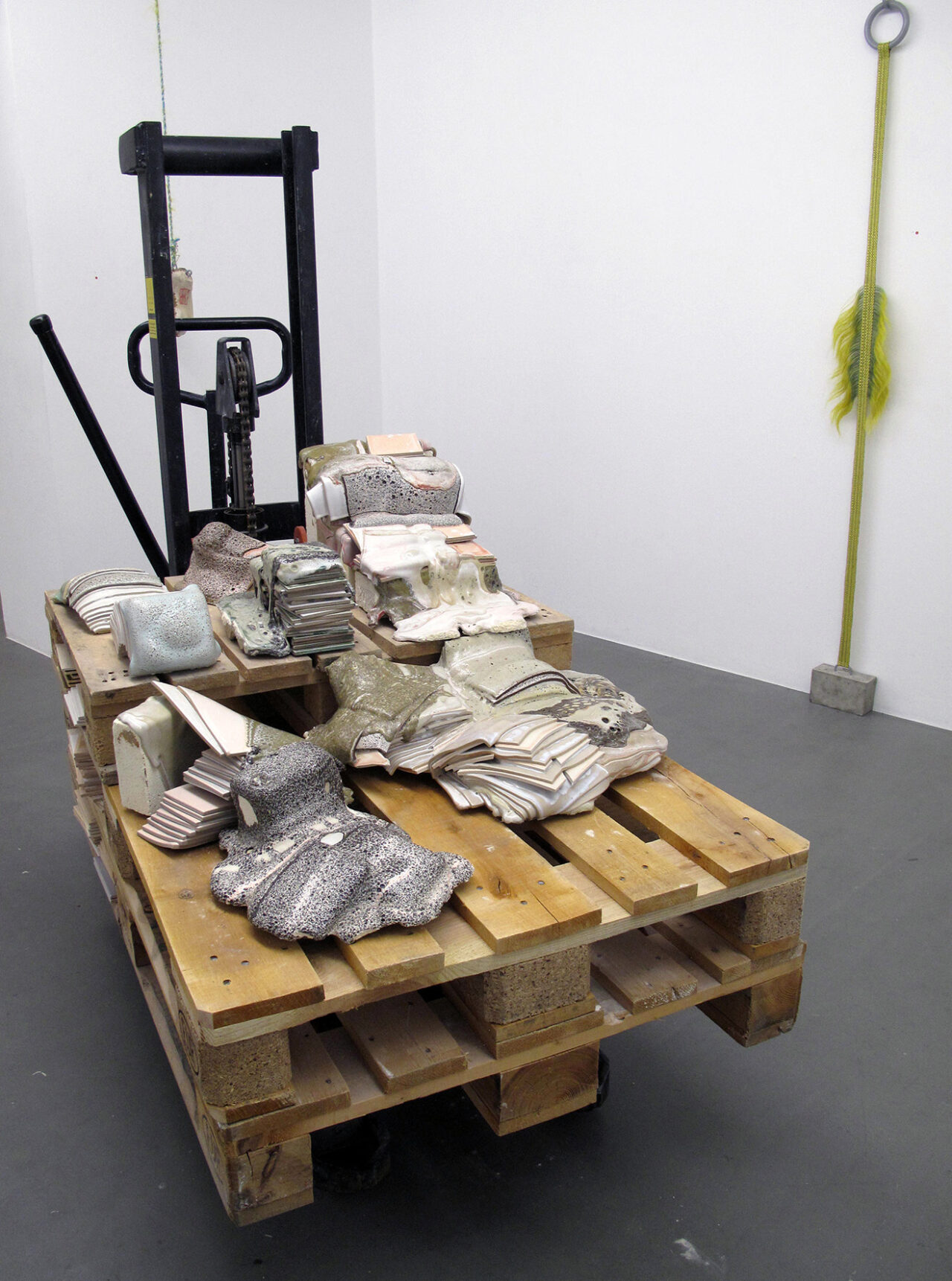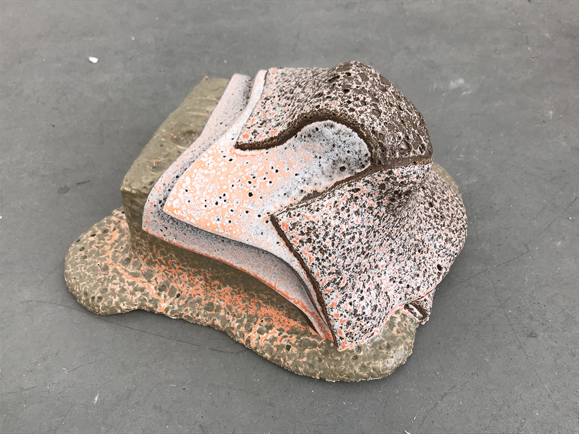 Once part of a mountain that was weathered down and ran with rain to find rivers and become clay. The raw material for this project was collected from a waste recycling station, rejected as leftover materials. Ceramic tiles, re-fired, reveal that the squares that seemed fixed are still malleable. In the heat of the kiln, transformations take place, folding, running, bubbling.