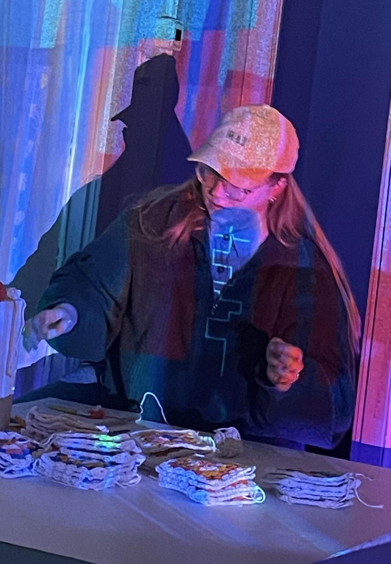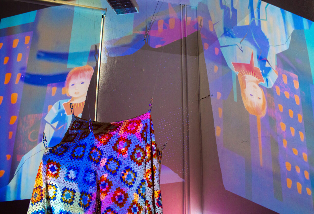 The dreamscape är det utrymme du befinner dig i när acceptans inför att det är omöjligt att återvända till drömmarnas sovande värld, men ändå innerligt trånar efter att komma så nära du kan. Till mystik, förundran och utvecklade fantasier. Sum of Betwixt suggestivt och varsamt strävar efter att påminna människor om att vistas med sitt sinnes tillvaro, medierat genom personliga berättelser om drömmar. Det handlar om att lyfta fram de sanningar uppenbarade från emotionell kunskap framför de mer validerade vetenskapliga och rationella. För att vistas i the dreamscape har jag tillämpat narrativ från animation, ljud och virkning samt applicerat metoder av samlande, upprepning och resonans. The Projection, The Sound and The Crochet: Construction erbjuder en fördjupning in i ett annan lager av medvetande samtidigt som den presenterar ett utrymme av denna lockelse, vilket möjliggör en förkroppsligad fantasi vandring för sinnet där du varsamt föreslås skapa dina egna konstellationer av resonans.